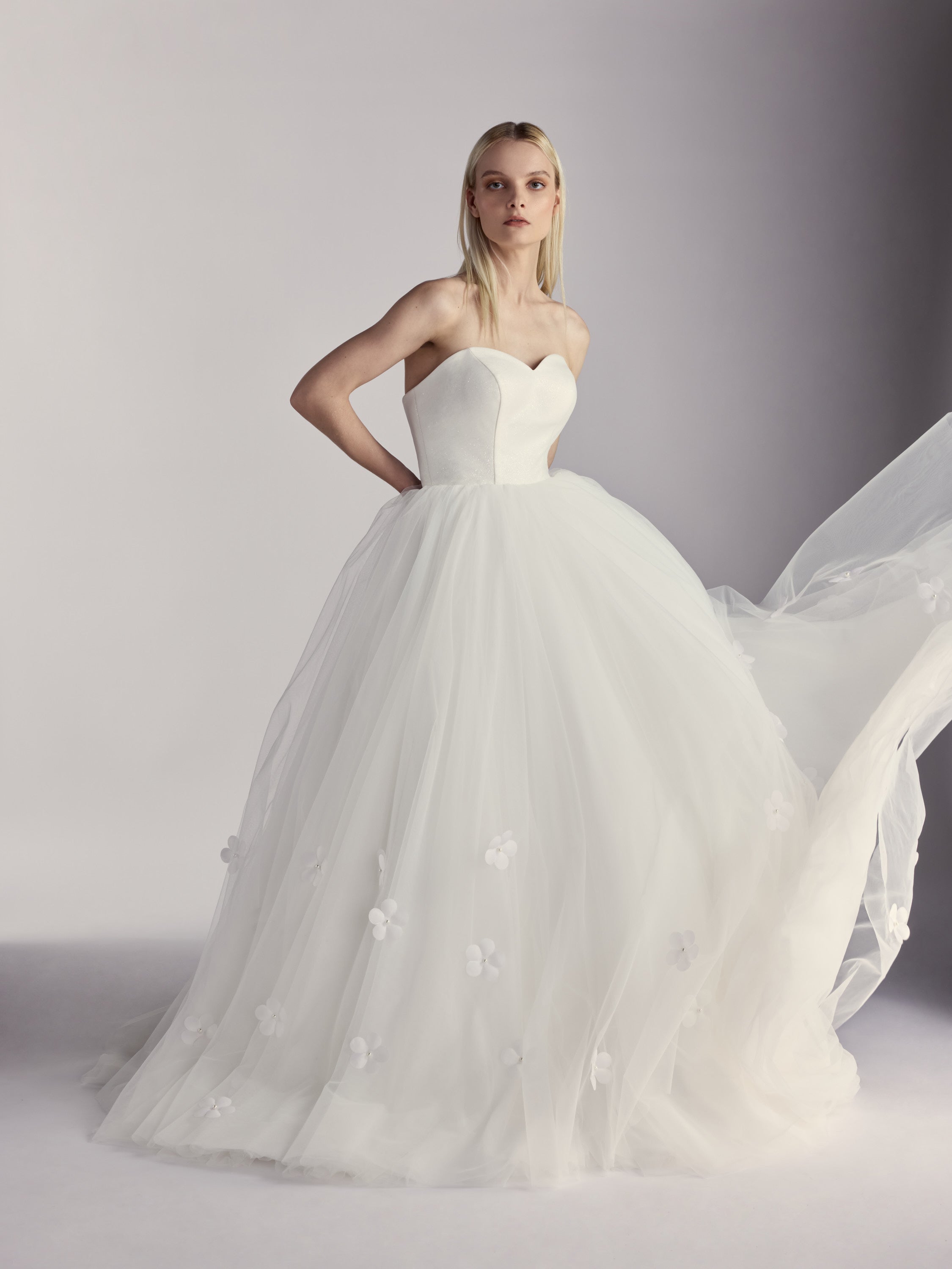 Luméa — Strapless Hand-Applied 3D Silk Floral Tulle Ballgown