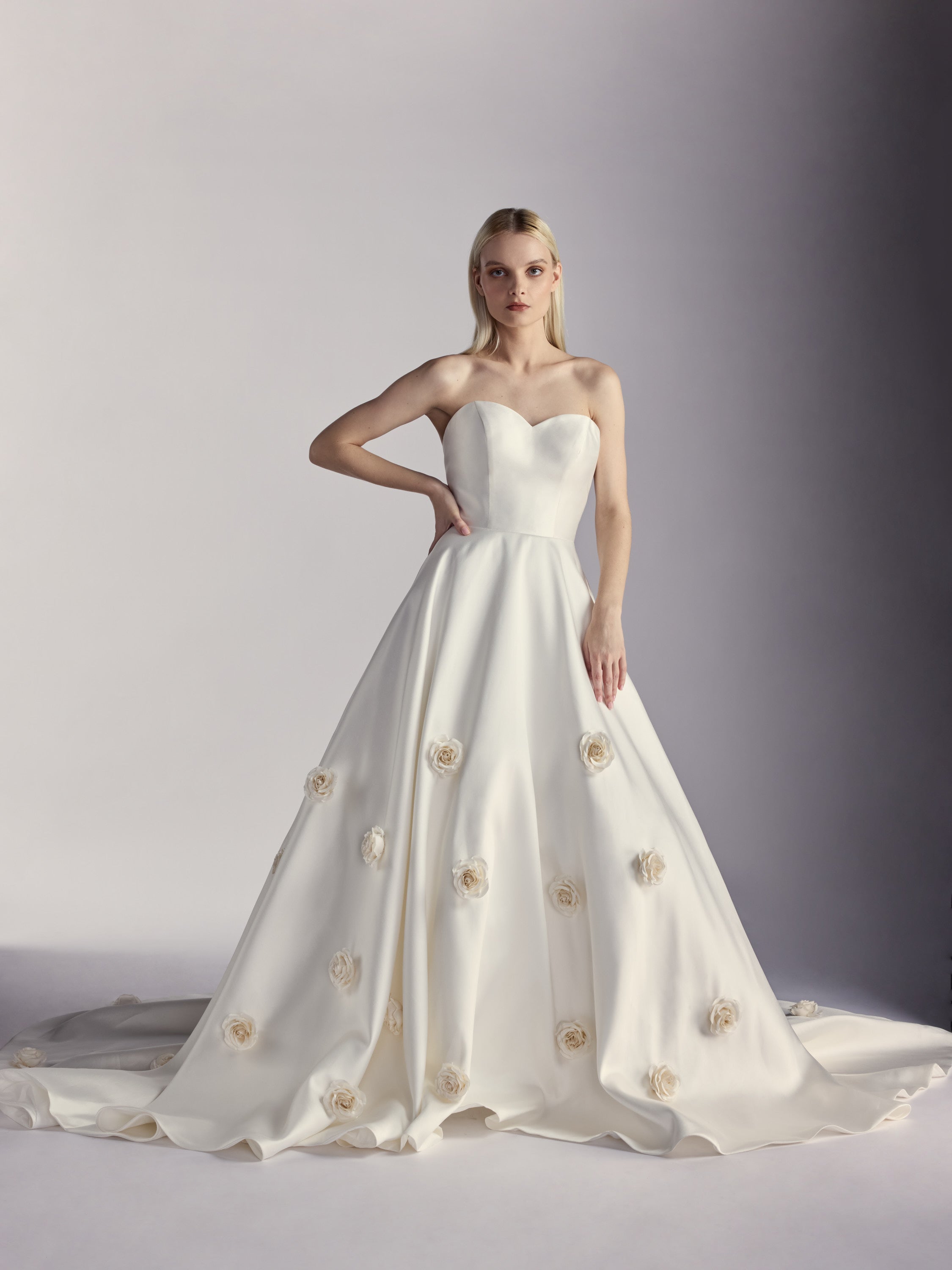 Roselle — Mikado Ballgown with Handcrafted Duchess Silk Satin Roses