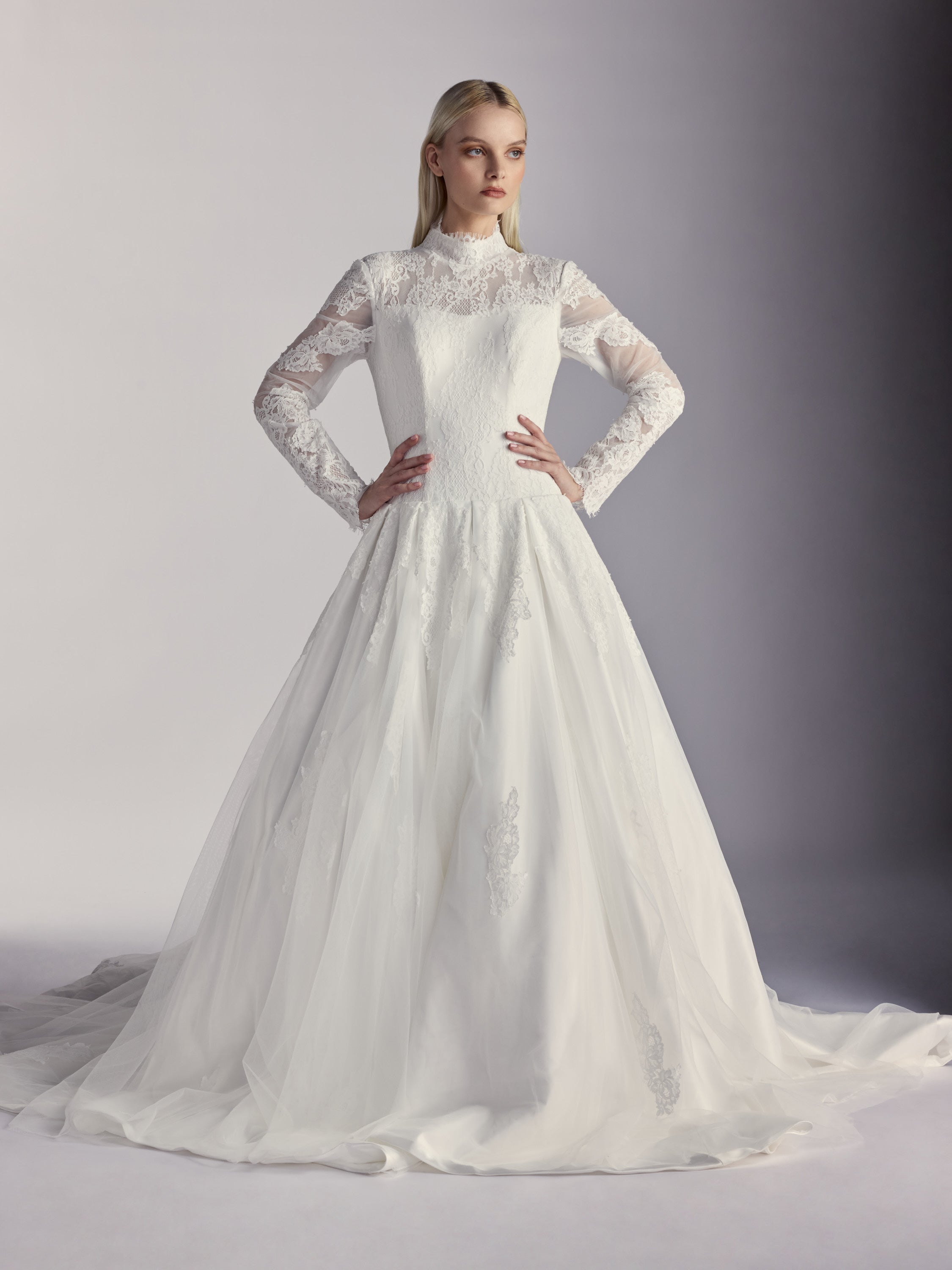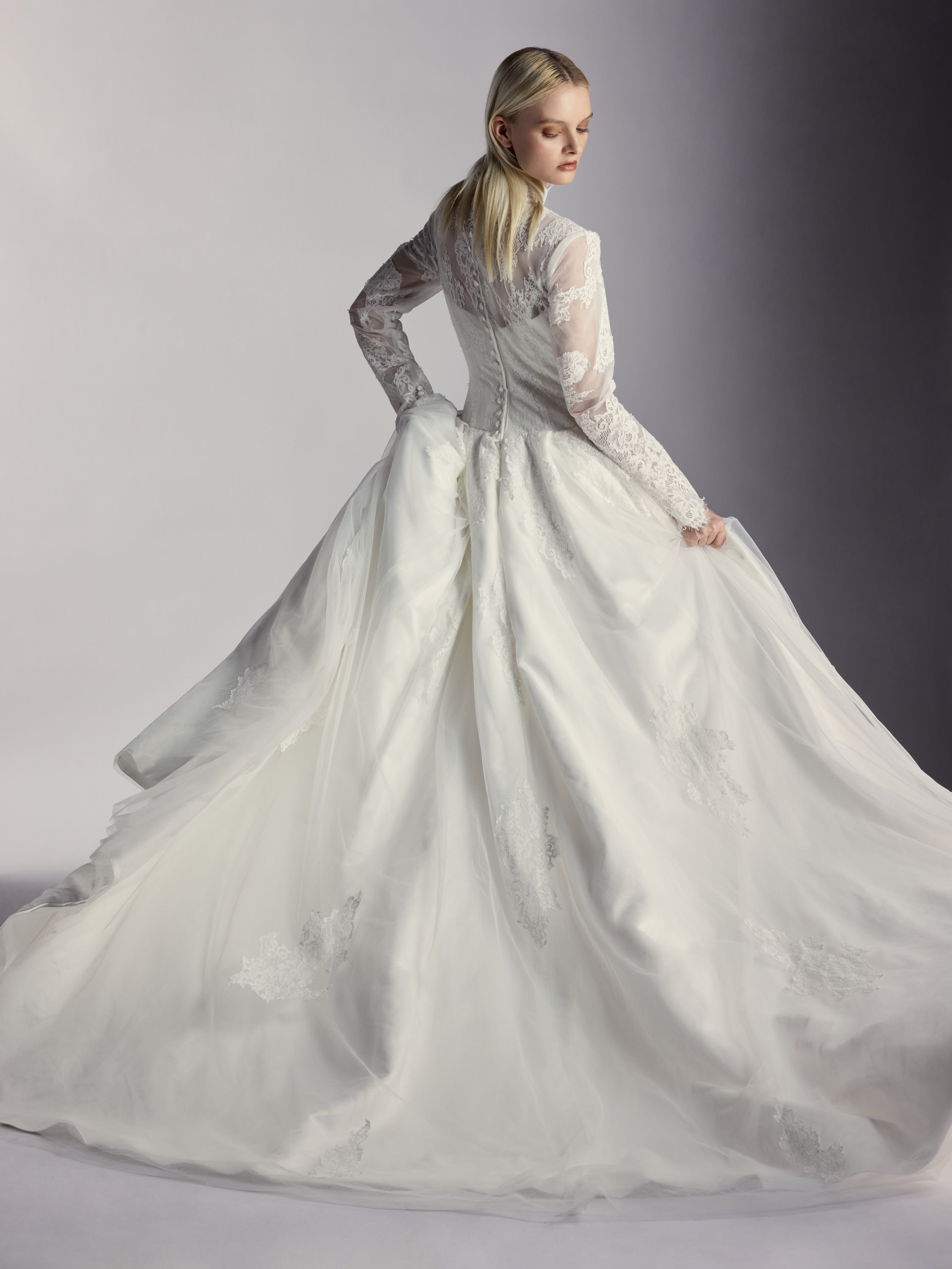 Signature designs are typically priced from $8,000 to $15,000+, with select styles beginning at $6,000. Each piece is defined by exceptional craftsmanship, meticulously crafted, often featuring hand-crafted silk florals and authentic European crystal embellishments, created for modern, discerning brides who value timeless elegance and true quality.