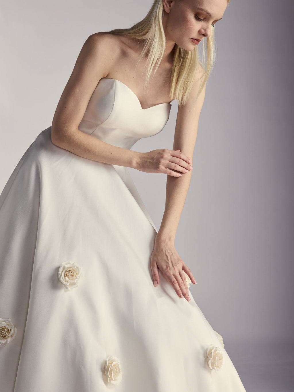 Roselle — Mikado Ballgown with Handcrafted Duchess Silk Satin Roses