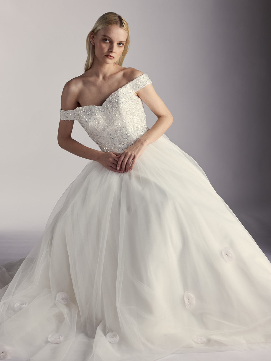 Maribel — Off-Shoulder Hand-Embellished Tulle Bridal Gown